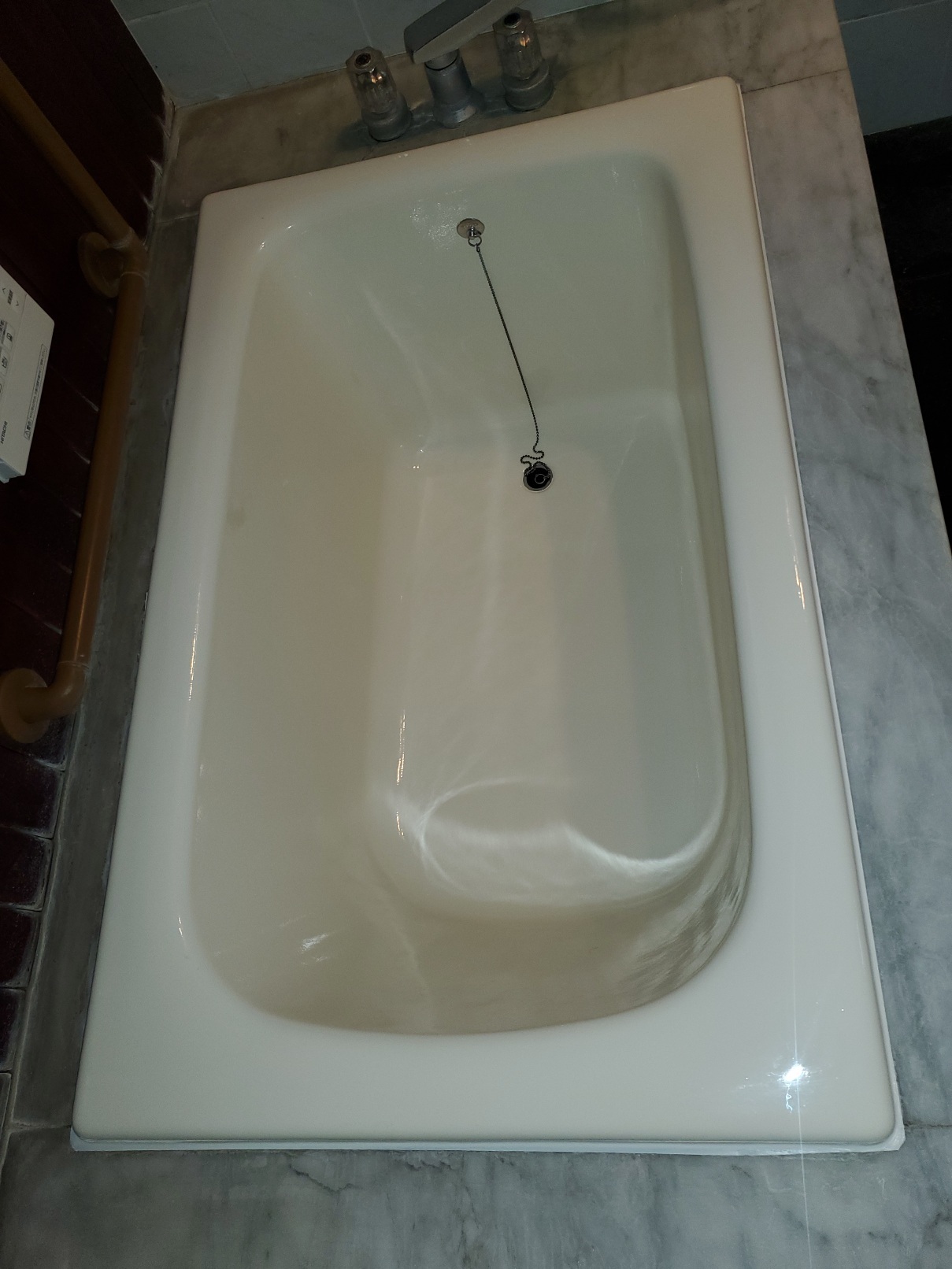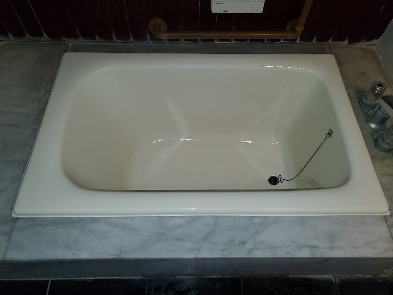 神戸市でのホテルホーロー浴槽塗装工事です。作業員2人で現在で各月に分けて87部屋完了。