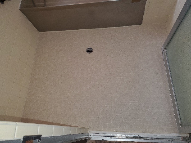 ユニットバス浴槽以外塗装と床シート工事です。