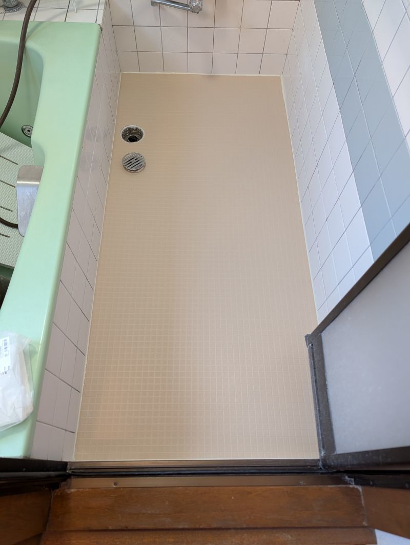 洗い場も同じく、ただ塗装では若干滑りやすくなるのでシート施工です。